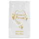 Wedding favour gift bag gold coloured heart with butterflies design. Customise this gold coloured wedding favour gift bag with your wedding details. Should you require any help with customising then contact us through the link on this page. Gold coloured heart with butterflies personalised wedding favour gift bag