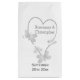 Wedding favour gift bag silver coloured heart with butterflies design. Customise this silver coloured wedding favour gift bag with your wedding details. Should you require any help with customising then contact us through the link on this page. Silver coloured heart with butterflies personalised wedding favour gift bag