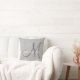 Custom monogram wedding pillow printed on faux grey linen background.
