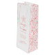 Graphic drawing of starfish / sea stars with swirl wave sea coral orange pink and white patterned wine bag. Modern beach wedding design part of the sea star swirls wedding stationary set. Ideal to give as a gift to the happy couple at a beach wedding, bridal shower or rehearsal dinner. Customise with your own sentiments, bride and grooms name and wedding date. Unique drawing and design by Sarah Trett.