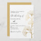 A white background decorated with simple golden ginkgo leaves. Personalise and add your names and the details.