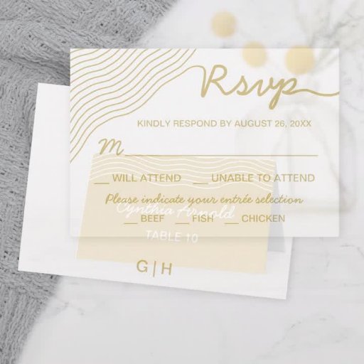 Celebrate your wedding with these eye-catching minimalist modern place cards in gold and white (the gold colour is printed on the cards). With a wavy line theme, these stylish, formal cards are simply beautiful. Through the template fields, personalise with your wedding details.