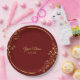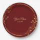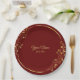 Wedding Golden Floral Geometric Wreath Red Party Paper Plate