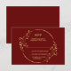 Wedding Golden Floral Geometric Wreath Red RSVP Card