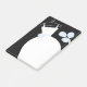 Bridal themed post-it notes with a pretty design in shades of blue, black and white featuring a stylised wedding dress on a hanger accompanied by a bouquet of flowers. A customisable design for you to personalise with your own text, pictures and ideas.
