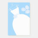 Bridal themed post-it notes with a pretty design in shades of blue and white featuring a stylised wedding dress on a hanger accompanied by a bouquet of flowers. A customisable design for you to personalise with your own text, pictures and ideas.