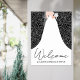 A bride in her wedding dress on a black (or any colour) background, makes a perfect welcome sign for your bridal shower. (Rose pattern can be deleted.) MATCHING items in our store.