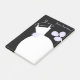 Bridal themed post-it notes with a pretty design in shades of purple, black and white featuring a stylised wedding dress on a hanger accompanied by a bouquet of flowers. A customisable design for you to personalise with your own text, pictures and ideas.