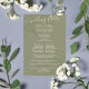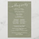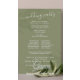 A simple Wedding ceremony program paper sheet template. This botanical elegant green, minimalist program with simple calligraphy script is perfect for any beach wedding, with elegant palm leaves,
