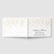 This guest book is shown in white with a curtain of golden coloured petite stars on both front and back are splattered all over this guest book.