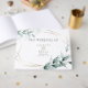 Wedding Guest Book | Greyed Jade Green Botanical - variations of Greyed Jade Green - muted jade green leaves surround the terrarium style gold frame. Fresh and simple - yet deliciously elegant. This is part of a design coordinated wedding suite collection designed by the BarefootBride™. Features a simple classic text style (that can be changed if you like just Click Personalise this template then in the drop down, click Click to customise further- here you can change the font and text colours)