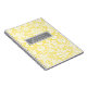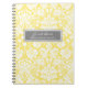 Spiral wedding guest book notebook in elegant bright canary yellow, grey and white classic floral damask vintage pattern. Customisable with your names and wedding date.