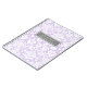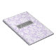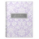Spiral wedding guest book notebook in elegant light pastel lavender purple, grey and white classic floral damask vintage pattern. Customisable with your names and wedding date.