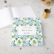 This guest book is shown in a romantic blue hydrangea print.