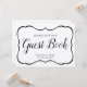 "Please sign our guest book" personalised sign in silver with black frame and text.