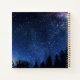 Starry night, blue night sky, woodland trees, galaxy, celestial themed wedding guest book.