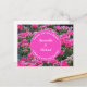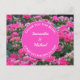 A nature photo capturing a beautiful bed of pink flowers provides the background for this wedding guest appreciation postcard. The small flowers and buds are accompanied by dark green leaves. This inexpensive wedding guest appreciation note can easily be personalised with the bride and groom's names and a special message.