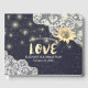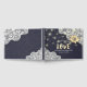 Wedding Guestbook Templates - Elegant Sunflowers, Vintage Lace Frame and Chic String Lights on Navy Blue Background.