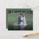 A great and thoughtful way to thank your friends, family, and coworkers who graced your ceremony with their presence on your wedding day with this modern photo thank you budget cards with script hand lettered "thank you" and a love heart.