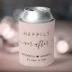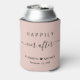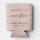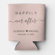 Blush pink wedding can cooler party favours with "Happily Ever After" in a mix of simple typography and a trendy script with swashes, your first names and the date joined by a heart. Perfect for your wedding reception, engagement parties and couples shower.