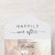 Modern wedding all in one invitation. Your invitation overlays your photo as a couple, and "Happily Ever After" is written on the inside top flap of the card in a mix of simple typography and a stylish script with swashes. A tear away RSVP postcard provides a convenient and eco-friendly and envelope-free response from your guests.