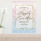 Wedding Welcome Sign | Real Foil Accents - Stunning shimmering sparkly Ocean waters glistening in the setting sun - in pale shades of dusty rose pink and dusty blue - text appears on a sheer white sparkling gold edged frame that shows the design but allows the text to easily be read. Accented with beautiful elegant handwritten calligraphy. Easy to personalise wedding template