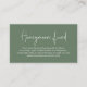 Celebrate the beginning of your journey together with our elegantly crafted "honeymoon fund" wedding invitation enclosed card. Featuring a sophisticated blend of modern script and romantic allure, in timeless forest sage green theme, each card is meticulously designed to convey the essence of your special day. Perfectly suited for couples seeking a unique way to share their honeymoon dreams, this card invites your loved ones to contribute towards unforgettable experiences. Whether nestled in a luxurious envelope or presented alongside your wedding invitations, our card adds a touch of enchantment to your celebration, promising cherished memories that last a lifetime. Designed by TeeshaDerrick.