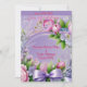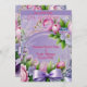 "Invitation to The Wedding of The Parties, In Holy Matrimony & The Date", inside A (Violet with Plum Border) Circle Horizon, surrounded by a Boquete of Pink & Violet Peonies with flowing Satin, Violet Ribbon & Bow, with "Date", above & "Day, Time & Wedding Venue", below Circle Horizon, all on Violet background.