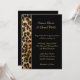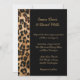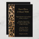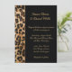 This romantic classic wedding invitation is shown in a black safari leopard print in a formal layout with text in a lovely script print and with script text highlighting the names of the Bride and Groom.