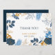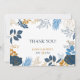 Blue and gold stylised flowers and leaves elegant wedding frame design. Thank you template you can personalise.