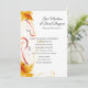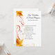 This wedding invitation is shown for a Fall Wedding, shown in a classic layout on a White colour card with a modern layout with a art print of a pretty fall leaves pattern.
