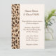 This romantic classic wedding invitation is shown in a safari leopard print in a formal layout with text in a lovely script print and with script text highlighting the names of the Bride and Groom.