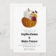 Introducing our stunning fall-themed wedding invitation, featuring a beautiful white pumpkin sitting atop a rustic orange pumpkin, adorned with a colourful array of pink, red, and yellow flowers, as well as some gorgeous fall leaves. This invitation is perfect for couples who love the autumn season or those who appreciate charming yet straightforward designs.