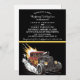 Hot Rod party fire wedding invitation has a orange flame burning out and around a old car. At bottom to the middle and a black background with a place to put all your invite text.