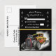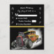 Hot Rod party wedding RSVP has a old car. At bottom to the middle and a black background with a place to put all your INFO text.