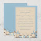 A beautiful destination wedding invitation with an exotic beach theme. A pretty sand texture background pattern in neutral cream tones and shades of ocean blue is scattered with lots of little beach pebbles. On top of the pebbles are a variety of sea shells, sea urchins, starfish and pearls. This version is arranged in the format of the Bride and Groom hosting the wedding.