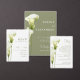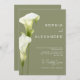 This wedding invitation features a sophisticated, minimalist style. Delicate calla lilies in soft green hues are depicted against a light background, creating an atmosphere of sophistication and tranquility. The design is modern, airy, and perfect for a stylish, romantic wedding.