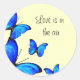 Colourful envelope stickers, with bright blue butterflies, against a pale yellow background. Great as that special finishing touch to your wedding invitation's envelopes. Customise with your own text.