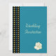 blue wedding invitation from bride and groom's parents, polka dots and rose.