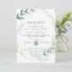 Wedding Invitation | Greyed Jade Green Botanical - variations of Greyed Jade Green - muted green leaves top and bottom over terrarium style gold frame, a faux hand made paper texture in a very light jade green tone on the back. Fresh and simple - yet deliciously elegant. This is part of a design coordinated wedding suite collection designed by the BarefootBride™. Features a simple classic text style (that can be changed if you like just Click Personalise this template then in the drop down, click Click to customise further- here you can change the font and text colours)