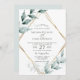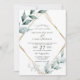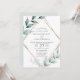 Wedding Invitation | Greyed Jade Green Botanical - variations of Greyed Jade Green - muted green leaves top and bottom over terrarium style gold frame, a faux hand made paper texture in a very light jade green tone on the back. Fresh and simple - yet deliciously elegant. This is part of a design coordinated wedding suite collection designed by the BarefootBride™. Features a simple classic text style (that can be changed if you like just Click Personalise this template then in the drop down, click Click to customise further- here you can change the font and text colours)