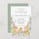 Save on paper and money with this sustainable wedding invitation with QR code. An elegant and classy design, these budget wedding invite features both calligraphy typography with a classic sans font. A bottom boarder of botanical watercolor orange poppies, lavender and greenery frames your details. The wildflowers invite reverses to your wedding QR code and space for additional details over a sage green background. For more budget wedding invitations with wildflowers visit www.zazzle.com/dotellabelle