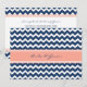 Wedding invitation cards in elegant and contemporary dark navy blue, peach orange pink and white retro and casual chevron zigzags stripes pattern. Customise these invitations with your wedding details. Available in matching products for all of your wedding needs.
