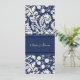 Wedding invitation cards in elegant navy blue and off white classic floral damask pattern. Customise these invitations with your wedding details. Available in matching products for all of your wedding needs.