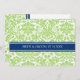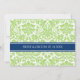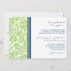 Wedding invitation cards in elegant and contemporary bright apple green, dark navy blue, and white classic and chic floral damask vintage pattern. Customise these invitations with your wedding details. Available in matching products for all of your wedding needs.