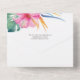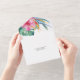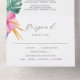 These destination wedding invitations with rsvp card feature feature tropical watercolor flowers and palm leaves in shades of pink, orange and green. An elegant choice for a seal and send or folded marriage invites. To see more affordable wedding invitation ideas visit www.zazzle.com/dotellabelle