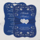Wedding Invite 2 Royal Blue Silver, Floral, Hearts