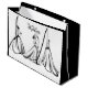Wedding-themed gift bag featuring elegant illustrations of brides. The bag showcases a black and white design with the word "Wedding elegantly displayed at the top.