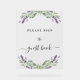 Transparent background. Decorated with lavender florals, flowers and eucalyptus greenery.   Text: Please sign the guest book.