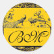 WEDDING LOVE BIRDS MONOGRAM black and white yellow Classic Round Sticker